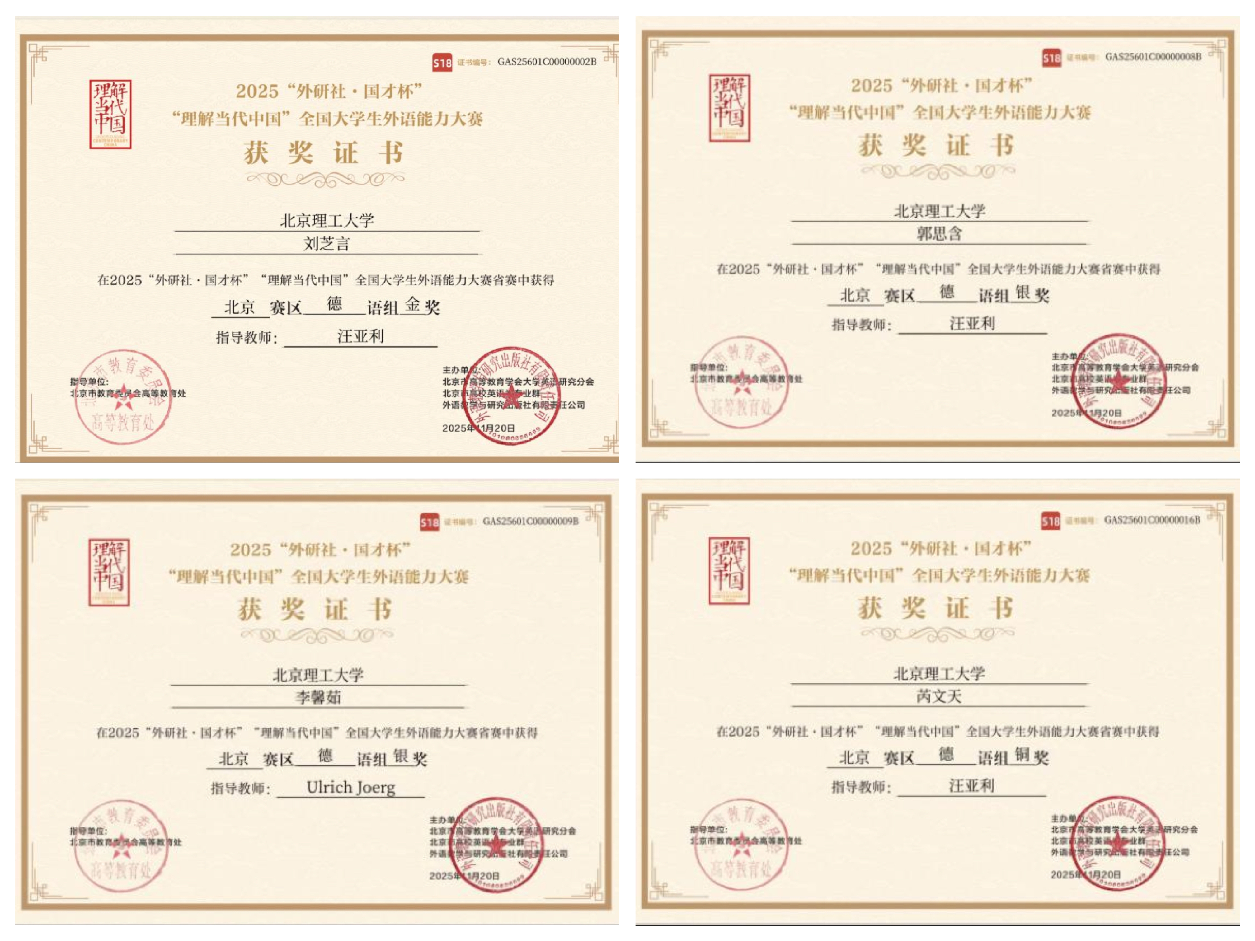 喜报|北理德语学子在2025“外研社·国才杯”“理解当代中国”全国大学生外语能力大赛中斩获佳绩