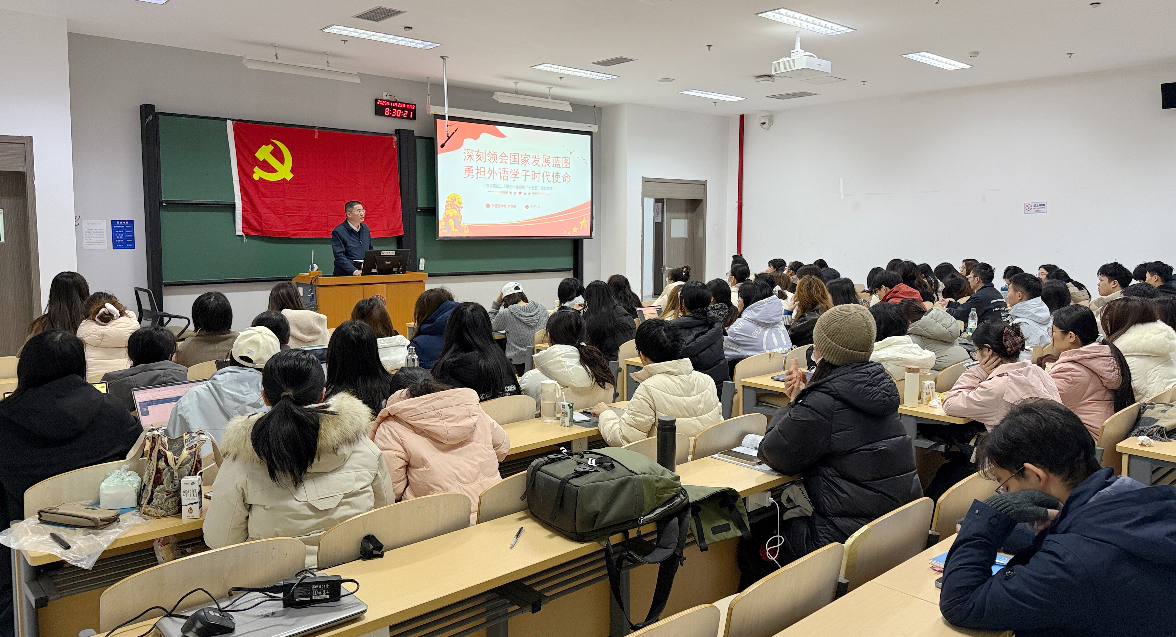 供稿、摄影:卞广为 编辑:于洁莹 为深入学习贯彻党的二十届四中全会精神,不断提高学生党员和入党积极分子的政治素养和思想理论水平,11月26日,太阳成集团tyc9728院长李京廉教授以“深刻领会国家发展蓝图,勇担外语学子时代使命——学习党的二十届四中全会和‘十五五’规划精神”为题讲授专题党课。学院全体学生党员和入党积极分子、明德书院昭理和知理党支部成员参加党课学习。 李京廉从“时代方位与战略擘画——规划的宏大背景与深远意义”、“核心要义与外语机遇——规划的主要内容”、“知行合一与时代同行——青年学生...