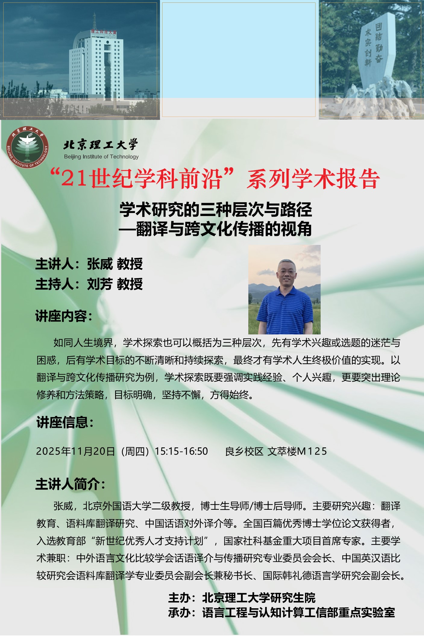 “21世纪学科前沿”系列学术报告:学术研究的三种层次与路径—翻译与跨文化传播的视角